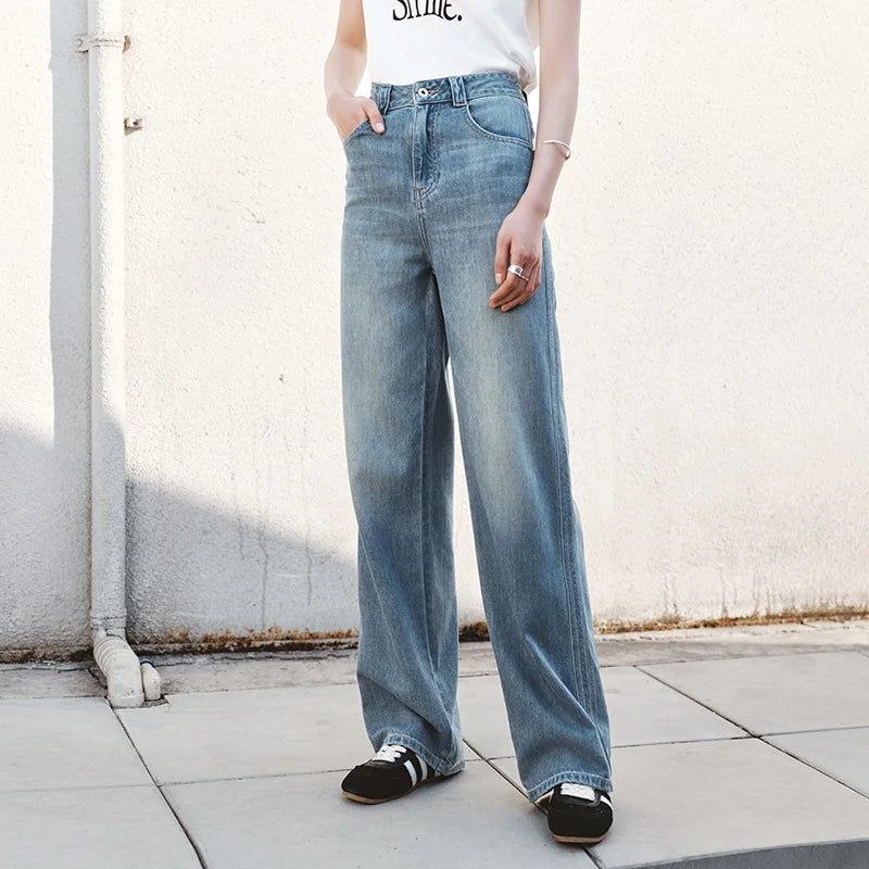 • Styl spodni z szerokimi nogawkami: Te damskie jeansy z szerokimi nogawkami podkreślają sylwetkę i oferują modny wygląd.