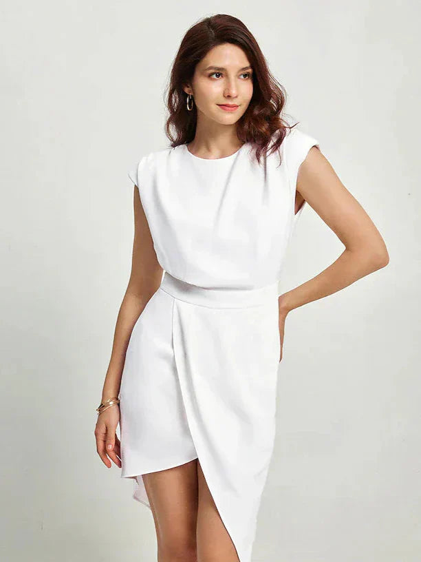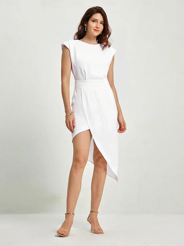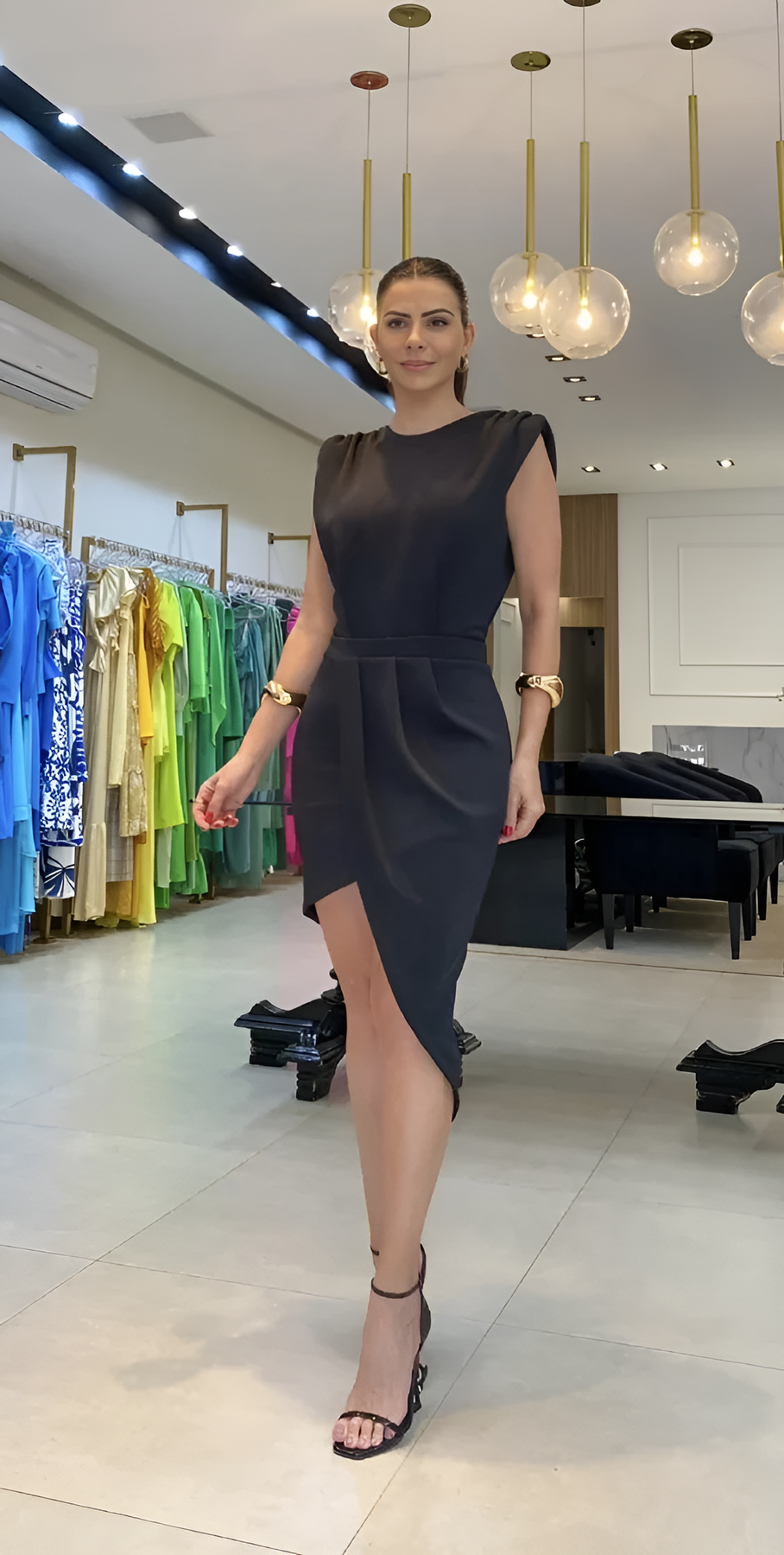 Sukienka Daphne Asymetryczna to nowoczesna klasyka, łącząca elegancję z wszechstronnością. Z wyraźnymi liniami, ustrukturyzowaną talią i eleganckim asymetrycznym dołem, ta półformalna sukienka jest idealna na różne okazje.