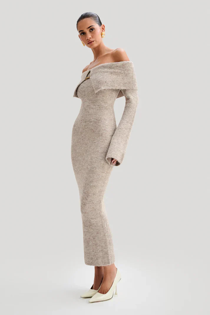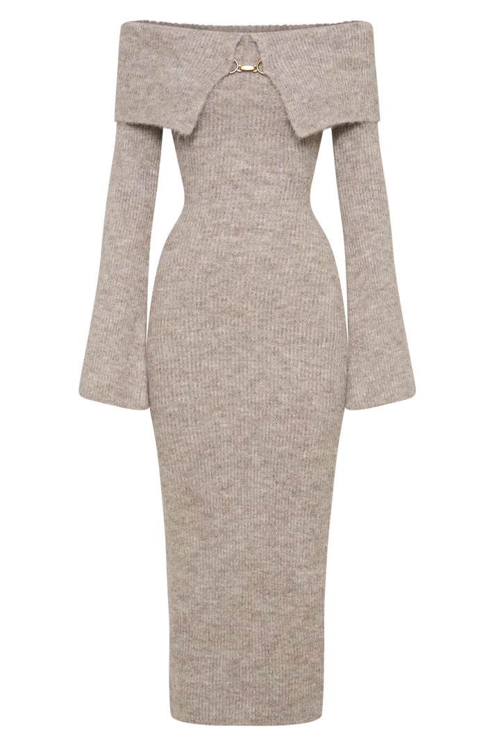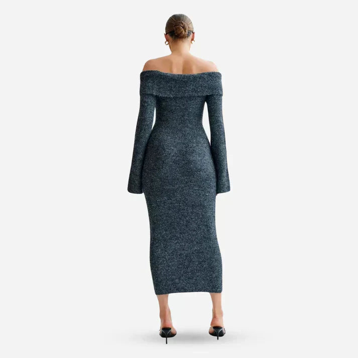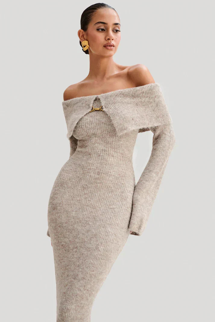 Milava™ | Dzianinowa sukienka z odkrytymi ramionami Baxter